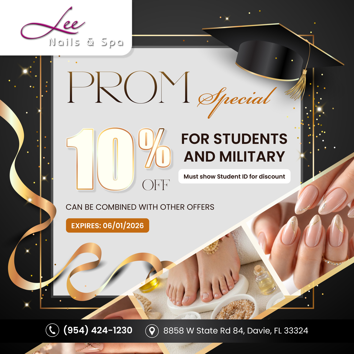 Lee Nails & Spa is one of the best nail salon located conveniently in Davie, FL 33324. We guarantee your satisfaction by the passion and many years’ experience of our technicians.